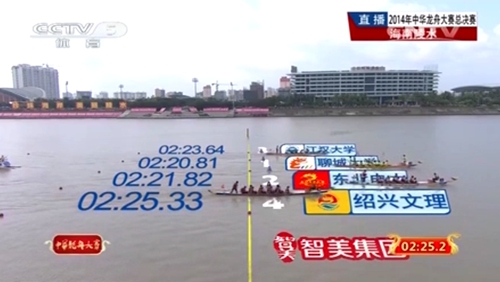 中华龙舟大赛是目前我国龙舟比赛级别和水平最高的一项电视直播赛事,该赛事由国家体育总局、中视集团联合主办,并由CCTV-5对整个赛事进行全程现场直播。我校龙舟队参加了其中4个分站赛和总决赛,取得了分站赛第二、三、四名,总决赛第四名的好成绩,同时,龙舟队通过中央电视台的直播,把学校的良好形象带到了全国观众的面前,为学校赢得了良好的社会声誉。
