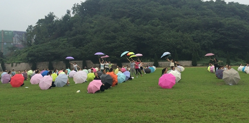 自接到组委会通知起,校、院领导老师十分重视,精心筹划、积极部署,通过宣传动员和面试筛选,最终确定120位有舞蹈基础的小教和学前专业女生参加。自9月11日起,志愿者们放弃了中午及双休日休息时间,克服困难、不畏炎热、风雨无阻,在南山田径场开始紧张有序的排练。