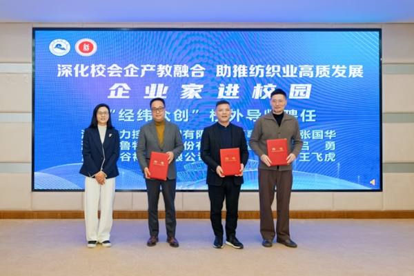 为深化校会企产教融合,助推纺织业高质发展,11月26日,学校与绍兴市纺织行业协会举办“企业家进校园”活动,纺织科学与工程学院、纺织智造现代产业学院联合承办。校长赵阳、副校长赵浪平,市经信局领导,市纺织工业行业协会会长、浙江迎丰科技股份有限公司董事长傅双利,执行会长、绍兴柯桥壹迦科技产业园董事长顾洁萍等11位企业家代表,校地方合作处、纺织科学与工程学院相关负责任人、教师代表等参加活动。