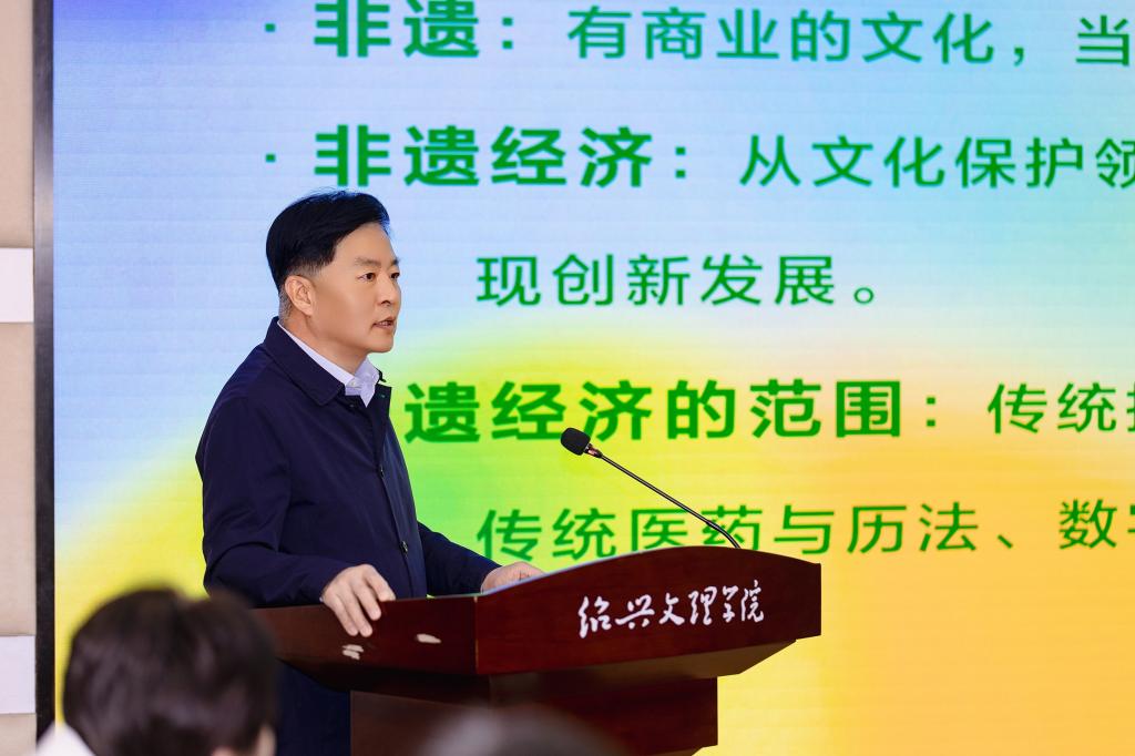 何俊杰介绍了绍兴非遗与非遗经济创新实践相关情况。金建康作主题报告“金融支持非遗经济,助推产城人文融合发展的实践与思考”。中国邮政集团绍兴分公司、咸亨集团、绍兴市非遗保护协会分别进行了非遗助力产城人文融合发展的案例分享。