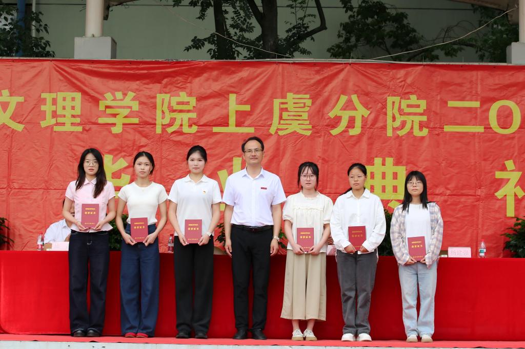 毕业典礼由上虞分院院长李旭明主持。上虞分院党委副书记施超宣读国家奖学金、省优秀毕业生表彰文件。艺术系刘磊作为教师代表发言,她回顾了与同学们的三年点滴,寄语同学们要有试错的勇气,在挫折中迭代成长;要保持终身学习的热情,在变化中紧跟时代步伐;要心怀感恩,做温暖的传递者。
