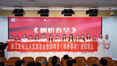 日前,浙江文化艺术发展基金资助作品《枫桥春早》受邀参加浙江省高校校园原创文化精品巡展巡演活动,受到主办方和当地观众的高度赞扬。