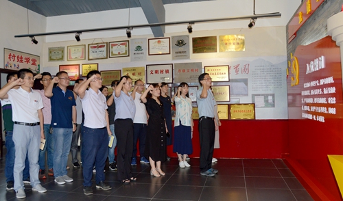 上旺村曾是一个“十户人家九户穷,挑脚抬轿做长工”的过路凉亭“苦上王”。1958年,在时任党支部书记王金友带领下,上旺人“八把山锄创大业”,成为当时中国农业战线上的一面红旗,被誉为“江南大寨”,是“鼓足干劲,力争上游,多快好省建设社会主义”的“活化石”。在讲解员的带领下,支部成员参观了上旺精神陈列馆,并集体宣誓。