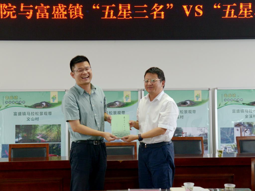 在富盛镇党委会议室,镇党委书记王越晟,人大主席张林江,党委委员、组织委员徐志江等接待了党支部一行。王越晟介绍了富盛镇基本情况,希望与我校加强信息沟通,谋划合作项目。沈赤向富盛镇赠送了《青春飞扬宋六陵》一书,希望校地以宋六陵老校址为媒介,推进各方面合作。