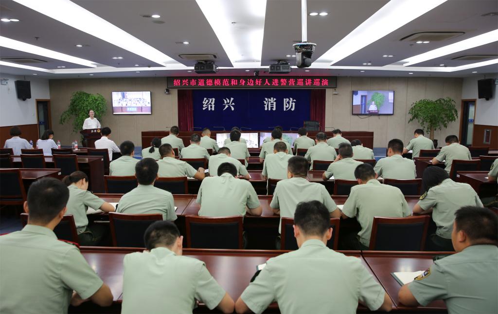 为充分发挥道德模范和身边好人的示范引领作用,进一步在全社会形成学习、崇尚、争当道德模范和身边好人的热潮, 9月3日晚,由绍兴市文明办主办、我校马克思主义学院和武警绍兴市消防支队承办的“绍兴市道德模范和身边好人事迹宣讲活动走进警营”顺利举行,全市消防官兵通过现场和视频会议形式参与观看本次活动。