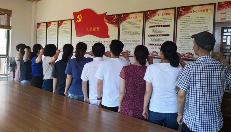 最后,全体党员以集体宣誓的方式,开展了一次重温入党誓词活动。
