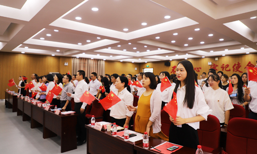 启动仪式上,与会领导为11所高校代表授旗,标志着“红网行动——网络文化进高校”主题活动正式启动。庆祝新中国成立70周年之际,全场人员共同挥舞着小国旗,齐声高唱《歌唱祖国》,祝愿伟大祖国繁荣昌盛。仪式后,在绍11所高校代表一同参观红色学府。
