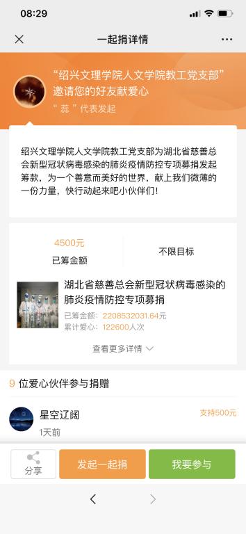 1月30日,学院党委通过网络发起募捐倡议,各党支部和班团支部踊跃捐款,发起倡议1天时间后,向湖北省慈善总会的新冠状病毒防控专项项目捐款16039.94元,捐款还在持续进行中。