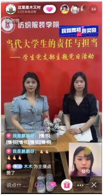 直播现场,学生党员代表也分享了他们在疫情期间从事志愿服务的小故事。“作为当代大学生,可以在自己的能力范围之内做一些力所能及的事情,哪怕只是一小部分。疫情期间,我们村需要大量的志愿者24小时在线控制人口出入,很自豪我是其中的一员。志愿工作虽然简单但需要极大的细心与耐心,作为女生第一次深夜当值有些犹豫,但我认为在祖国和人民最需要的时候,我们应该挺身而出,承担起属于我们的责任与担当。”纺硕1901班虞美雅在信中提到。