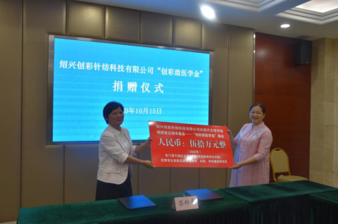 10月15日下午,绍兴创彩针纺科技有限公司捐资动本基金——“创彩助医学金”设立仪式在铁城科教馆一楼会议室举行。校对外联络处、学工部、医学院相关负责人出席仪式。