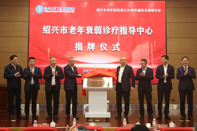 与会领导共同为“绍兴市老年衰弱诊疗指导中心”揭牌。该中心将整合多学科资源,聚焦老年衰弱综合征的早期筛查与干预,为全市基层医疗机构提供技术支持和培训服务,助力提升区域老年健康管理水平。