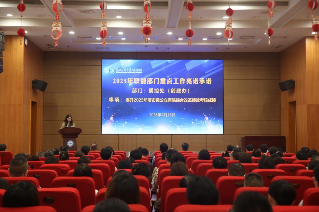 会上,各职能部门负责人围绕医院发展总体战略,立足岗位结合实际,以2025年度突破性工作举措为亮诺内容,逐一登台亮项目、亮目标、亮举措、作承诺。