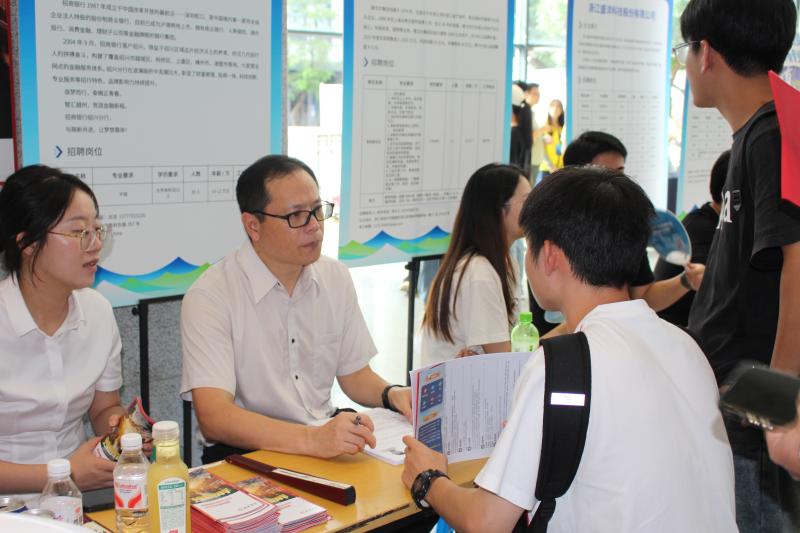 校党委副书记黄坚在招聘会现场实地指导。他指出,学校主动构建政校企三方联动模式,不仅能为学生高质量就业提供有力支撑,更能精准对接地方发展需求、为企业创新发展注入新鲜血液,实现多方共赢。