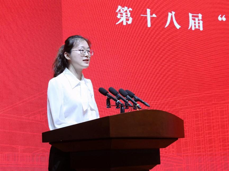 获奖学生代表寿平波发表获奖感言。她表示,将秉承对生命的敬畏和虔诚,坚定对医学的热忱和进取,不负韶华、不负时代,在青春的跑道上奋力奔跑,争取跑出当代青年的好成绩。