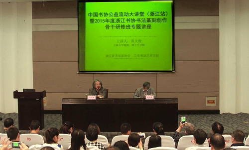 4月24日-26日,由中国书法家协会与浙江省书法家协会主办,兰亭书法艺术学院协办的2015年度浙江省书法家协会书法篆刻创作骨干研修班在兰亭书法艺术学院成功举行。浙江省书法家协会副主席赵雁君主持了本次研修班的学习。