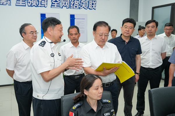 6月2日上午,市委副书记、政法委书记王涛一行来校走访调研,市委政法委常务副书记屠强,市教育局局长石剑晗,校党委书记崔凤军、党委副书记黄坚等参加。
