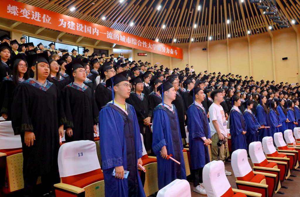 6月13-14日,学校为2024届毕业生举行庄重的学位授予仪式。校长赵阳为2024届毕业生授予学位,与毕业生们一一握手,拨穗正冠,合影留念;衷心祝贺学生们圆满完成学业,祝福毕业生们生活幸福、事业有成、身体健康。现场氛围温馨活泼,同学们也准备了各种合影动作,表达毕业生对学校的无限热爱和喜悦心情。 各二级学院党政负责人分别主持学位授予仪式并致辞。