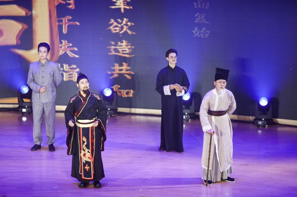 文艺汇演高潮迭起,尤其是由蔡元培艺术与设计学院师生共同创作、共同演唱的歌曲《幸福越城》,更是将现场气氛推向顶点,他们将歌曲献给越城,送给每一位热爱这片土地的人。