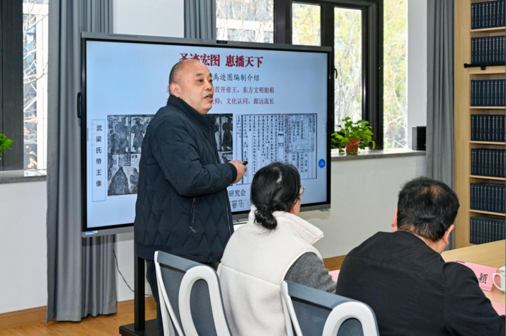 高等人文研究院执行院长兼秘书长、绍兴市文史研究馆副馆长何俊杰介绍编制《浙江尧舜遗迹图》的价值和意义。他说,拼接起中华大地上尧舜禹文化版图,是浙江建设文化高地的标志性成果、是浙江探索文明起源的重要载体、也是中华文化国际传播和城市间文化链接的生动范例。何俊杰还就编制“中国尧舜遗迹图”的可行性及出版“东亚禹迹探寻”、对尧舜禹文化进行整体研究等提出建议,同时表达用尧舜禹遗迹构筑中华文明源头叙事的美好愿景。