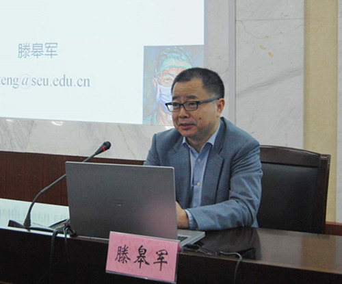 4月28日上午,我校放射专业82届校友、东南大学附属中大医院院长滕皋军教授作客“杏林讲堂”,结合自身的求学经历和学术经历,为我校医学生讲解青年医师成长的绿色通道——临床科技创新。校党委委员、医学院党委书记柳国庆和医学院师生200余人聆听了讲座。讲座由校附属医院副院长夏瑞明主持。