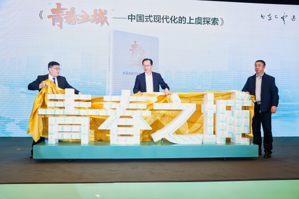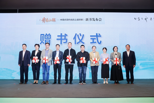 会议还举行了新书揭幕仪式和赠书仪式。张宏、陈名义、应锋共同为《“青春之城”——中国式现代化的上虞探索》新书揭幕。