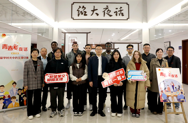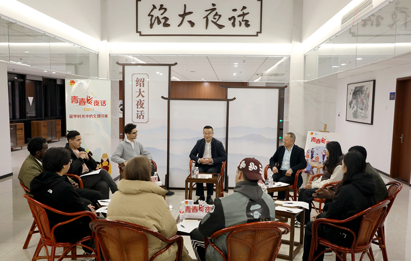 11月21日晚,“绍大夜话”第二十二期之“青春夜话”第十五期在行政楼三楼中庭举行。学校副校长胡云进与来自8个国家9名来华国际学生代表畅聊文理留学时光。校办公室、研究生院、教务处、国际交流合作处、团委等相关部门负责人参加活动。