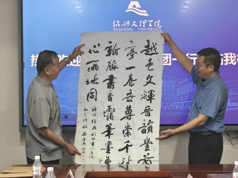 双方围绕三大核心议题展开深入洽谈:在共建兰亭书法学堂方面,拟依托学校已覆盖 14 个国家(地区)的 16个兰亭书法学堂基础,探索两岸学堂联动机制,共享数字课程资源与师资力量;在学术交流领域,计划联合举办两岸书法创作论坛、青年书家研修营等活动,搭建作品展示与技艺切磋平台;在文化推广层面,将结合台湾文化特色与绍兴书法研学资源,开发带有地方特色的文化体验项目,拓宽书法传播维度。