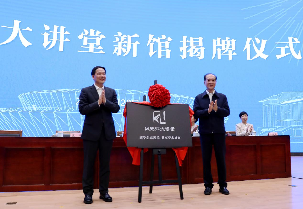 韩启德院士和绍兴市委书记温暖共同为风则江大讲堂新馆揭牌
