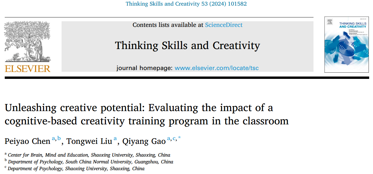 为了填补这一空白,高奇扬课题组为学龄儿童开发并评估了一个基于认知的创造力训练计划,在Thinking Skills and Creativity(SSCI,IF=3.652,中科院2区)期刊上发表了题为“Unleashing creative potential: evalsuating the impact of a cognitive-based creativity training program in the classroom”的研究论文。该研究采用了准实验设计,比较了实验组和对照组在训练前后以及后续测试中的创造性思维表现,证明了基于认知的创造力训练课程对创造性思维技能有积极、持久的影响,尤其是对创造性思维技能水平较低的学生。这对学校学生创造力的培养具有重要意义,也为教师、研究者和学校促进学校课程和教学实践的创新提供了新的见解。