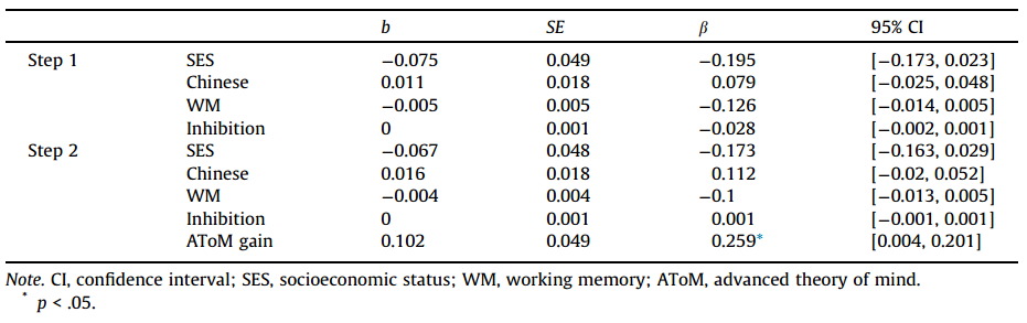 此外,通过层次回归分析,研究者发现AToM得分是儿童后测亲社会说谎的唯一显著预测因子。这表明AToM训练通过提升儿童对他人心理状态的理解和推理能力,能够间接促进他们的亲社会说谎。