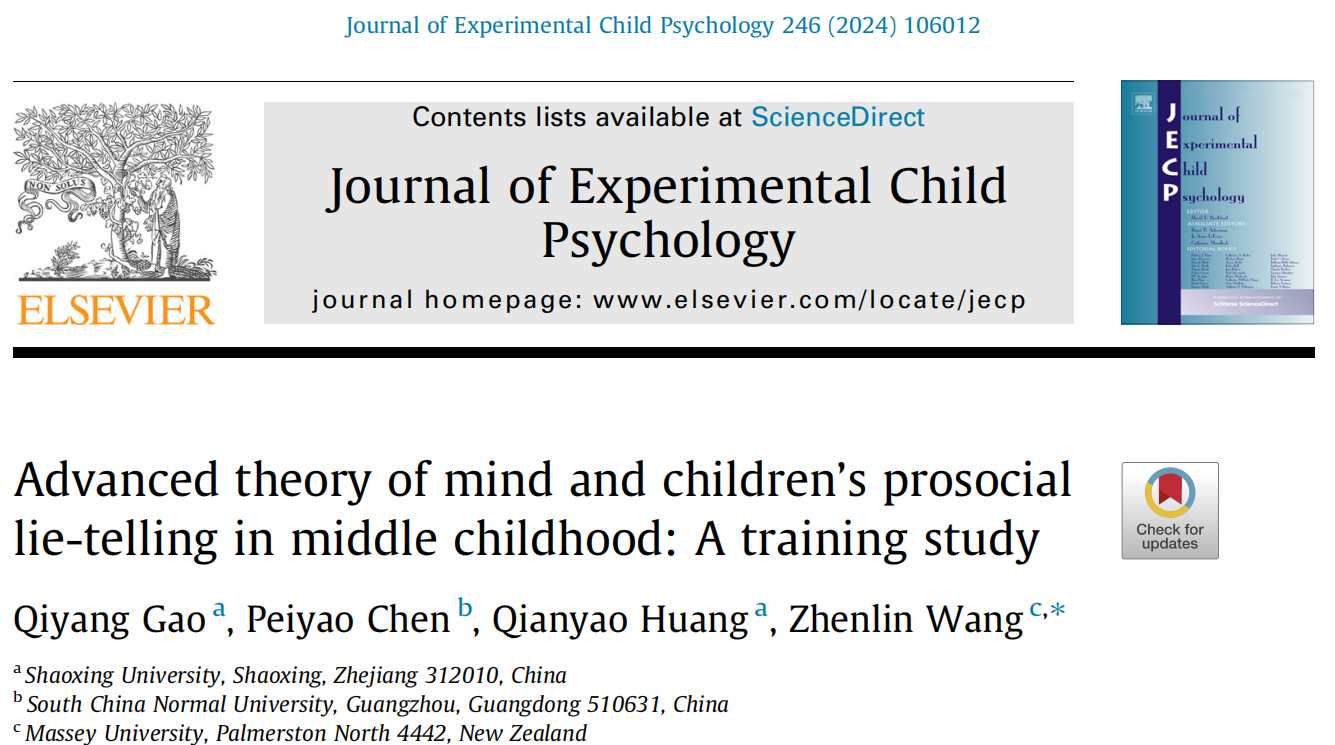 高奇扬课题组在Journal of Experimental Child Psychology(SSCI,IF=1.8,中科院2区)期刊上发表了题为“Advanced theory of mind and children’s prosocial lie-telling in middle childhood: A training study”的研究论文。该研究深入探讨了儿童高级心理理论(Advanced Theory of Mind, AToM)与亲社会说谎(prosocial lie-telling)之间的关系,并首次通过训练范式证明了AToM在儿童亲社会说谎发展中的因果作用。这一发现不仅为理解儿童社交行为中的心理理论提供了新的视角,也强调了在教育实践中通过特定训练提升儿童社交技能的重要性。